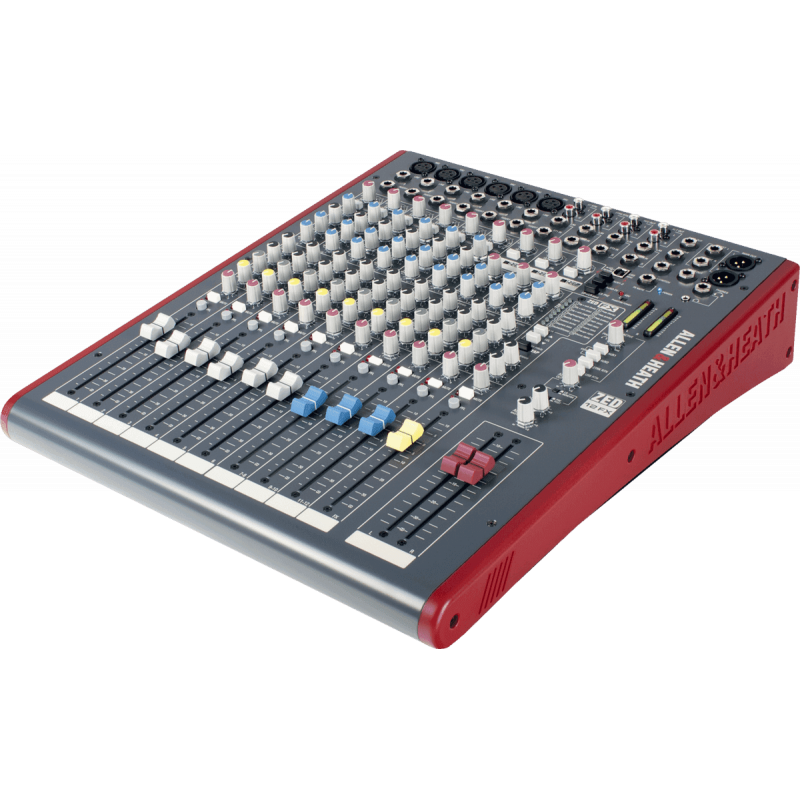 Si la ZED-10 et ses dérivées s'avéraient un peu trop limités pour vos besoins, la ZED-12FX devrait vous intéresser. Reconnaissable par ses ailes rouges si caractéristiques, cette ZED a bénéficié de tout le savoir-faire d'Allen & Heath et offre d'imposantes possibilités de routage du signal, rares pour sa taille et son prix. Ses performances et son faible encombrement en font une console idéale pour les groupes cherchant à voyager léger ou pour les petites installations.
